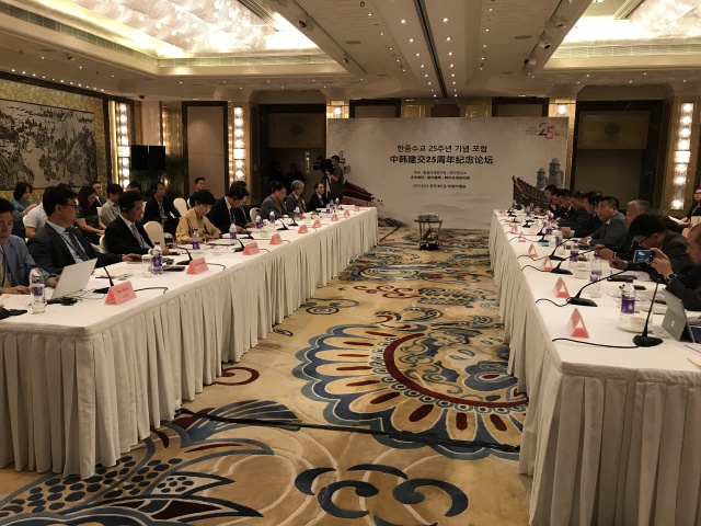 此次論壇是中韓建交25周年的系列活動(dòng)之一,主辦雙方旨在通過(guò)智庫(kù)交流進(jìn)一步推進(jìn)中韓公共外交,為兩國(guó)關(guān)系的恢復(fù)和平穩(wěn)健康發(fā)展貢獻(xiàn)積極力量。致辭嘉賓還包括韓國(guó)前駐華大使、未來(lái)研究院院長(zhǎng)辛正承,盤(pán)古智庫(kù)理事長(zhǎng)易鵬,盤(pán)古智庫(kù)學(xué)術(shù)委員會(huì)名譽(yù)主任、中共中央對(duì)外聯(lián)絡(luò)部原副部長(zhǎng)于洪君,韓國(guó)外交部公共外交大使樸銀夏等。韓中未來(lái)研究院執(zhí)行委員、前外交官丁相基,盤(pán)古智庫(kù)專家張璉瑰、朱鋒、高揚(yáng)、王棟、岳立、安剛、梁亞濱等參加了主題發(fā)言和討論環(huán)節(jié),針對(duì)過(guò)去25年間中韓關(guān)系發(fā)展歷程、目前中韓關(guān)系的癥結(jié)以及未來(lái)中韓關(guān)系發(fā)展方向等問(wèn)題給出了意見(jiàn)與建議。