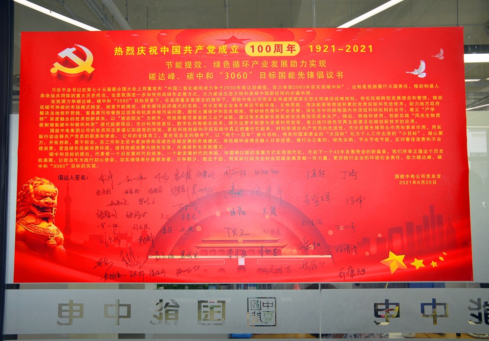 這是國(guó)能中電全體黨員及廣大員工對(duì)“3060” “碳中和”國(guó)家戰(zhàn)略的最佳解讀,是傳承紅色基因的莊嚴(yán)承諾,是踐行綠色使命的科學(xué)行動(dòng)。在公司未來(lái)的發(fā)展進(jìn)程中,我們將把黨性融入骨血,用先進(jìn)的環(huán)保設(shè)備控碳減碳,用高科技的環(huán)保技術(shù)守護(hù)綠水青山。
