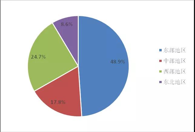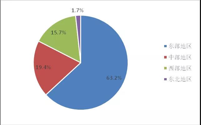 圖4. 2018年列入統(tǒng)計的各區(qū)域環(huán)保企業(yè)數(shù)量占比